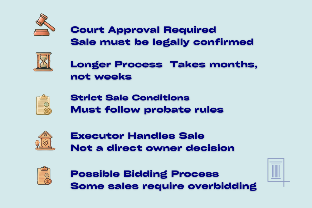 Unlike traditional sales, probate property sales involve legal oversight, court approvals, and sometimes competitive bidding.